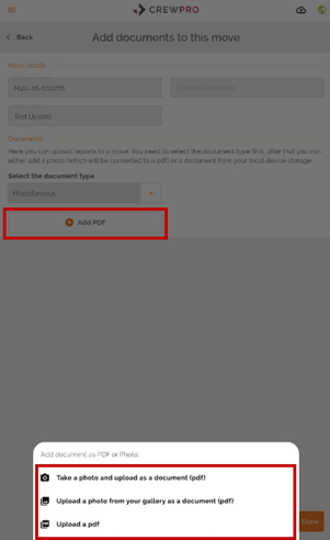 - After choosing your document type, click "Add PDF." From here, you have three options: take a photo, upload one from your gallery, or upload a file directly. Don't worry about the format, as all three options will automatically be converted to PDF.