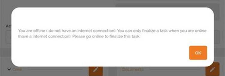 First, keep in mind that an internet connection is required to finalize a task. If you don’t have one, the app will display a reminder message about this.